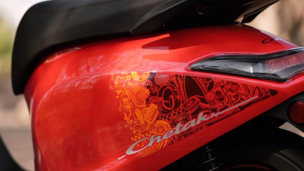 The Chetak C25 continues with the brand’s curvy, retro-inspired design language, but this version feels noticeably more youthful. Compared to earlier Chetak models, the styling is cleaner and more modern, without losing its identity.