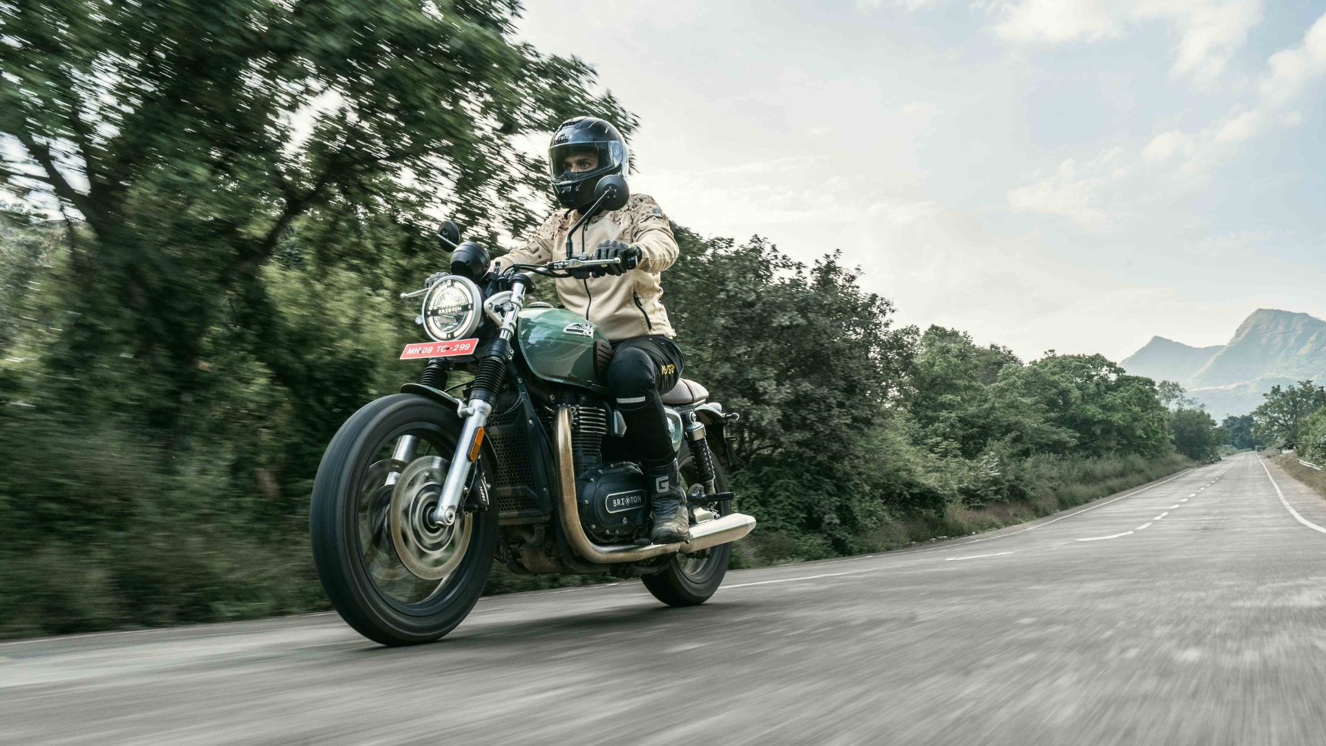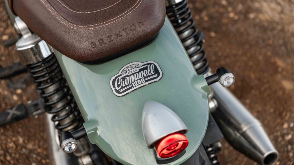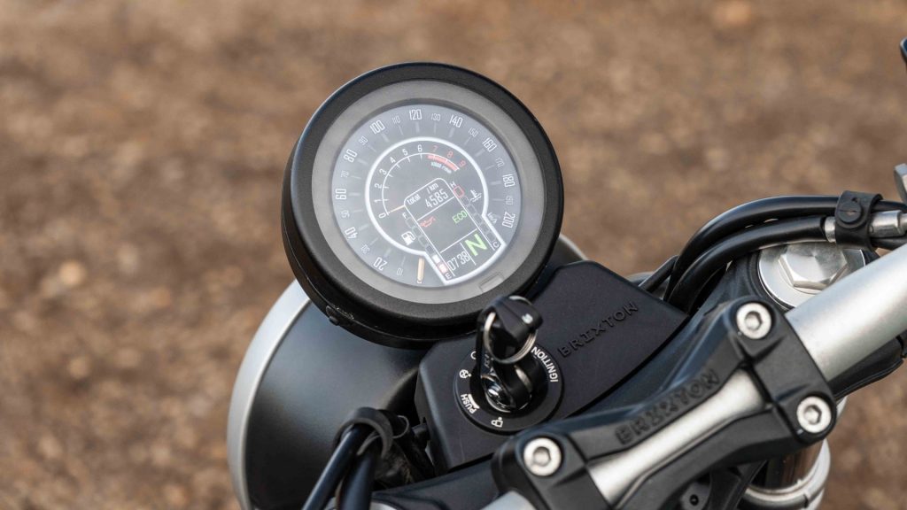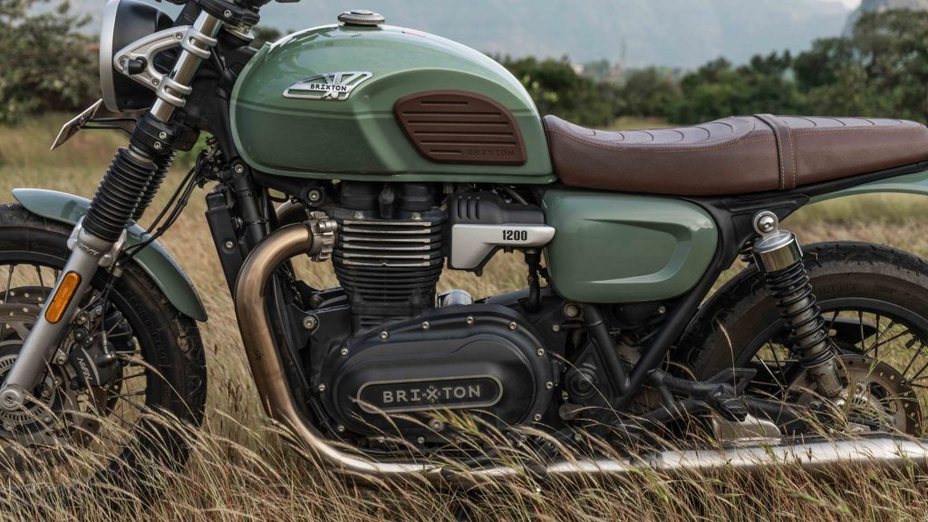 You get a circular LED headlamp, rounded indicators, spoked wheels, a striking green fuel tank paired with a brown seat, tank pads, metal mudguards and tasteful Brixton badging on the engine casing. The switchgear feels solid too, adding to the premium old-school impression.