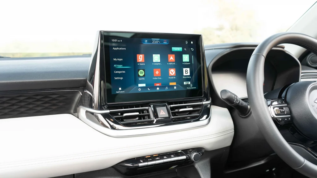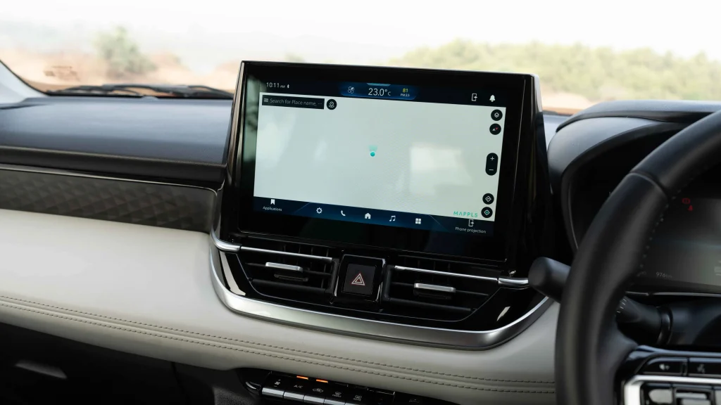 At the centre of the dashboard sits the SmartPlay Pro X infotainment system, which supports wireless Android Auto and Apple CarPlay and generally feels smooth and responsive in everyday use. The glossy finish on the screen, however, tends to attract fingerprints fairly easily and can reflect sunlight under certain conditions, which occasionally affects visibility.