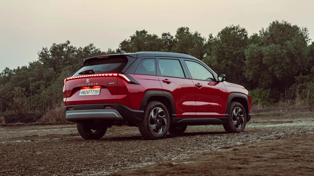 When it comes to features, the Victoris is extremely well equipped in its higher variants. The car offers a large infotainment system with wireless smartphone connectivity, a fully digital instrument cluster, ventilated seats, a panoramic sunroof, ambient lighting, a powered tailgate with gesture control and an Infinity sound system with Dolby Atmos. On the safety front, the Victoris comes with six airbags as standard along with electronic stability control, traction control, hill hold assist, ABS with EBD, tyre pressure monitoring and ISOFIX mounts.