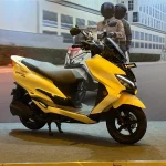 One standout element is the wheel setup: a 14-inch front and 12-inch rear alloy. The larger front wheel helps tackle uneven roads better, which is a welcome move for Indian conditions.