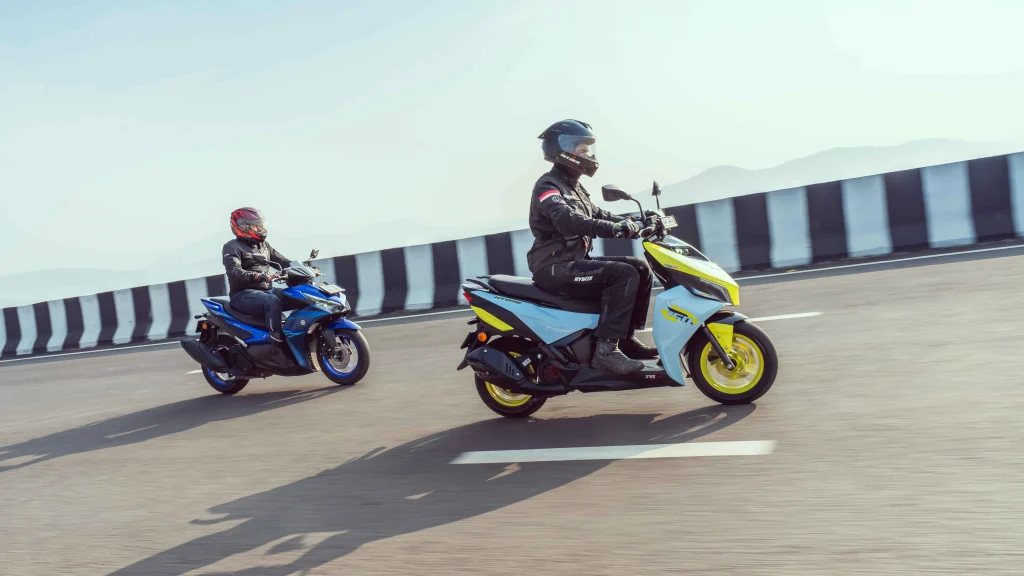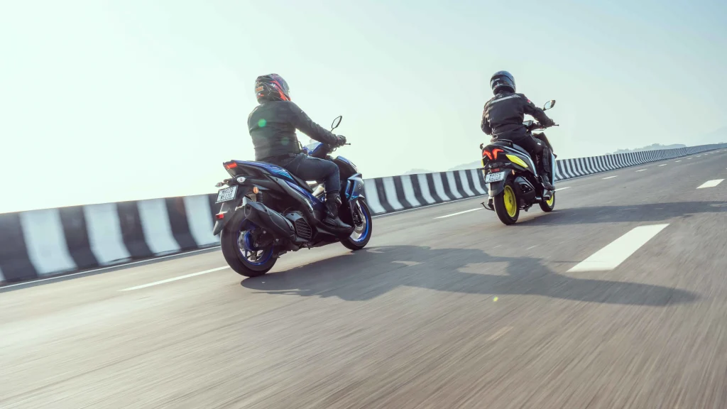 Despite producing more power and carrying additional weight, the Aerox can actually be the more fuel-efficient scooter of the two. In mixed riding conditions, it can return around 40–45 km/l, which is impressive for a performance-focused 155cc machine. A major contributor to this efficiency is Yamaha’s Variable Valve Actuation (VVA) technology, which optimises valve timing across the rev range to balance performance and fuel economy.